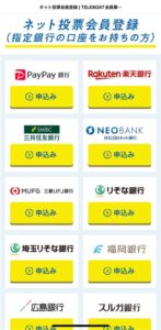 テレボートに登録ができる銀行が決まってるから登録前に確認してみてね👍✨的中したお金もここの登録口座に振り込まれるよ🎀